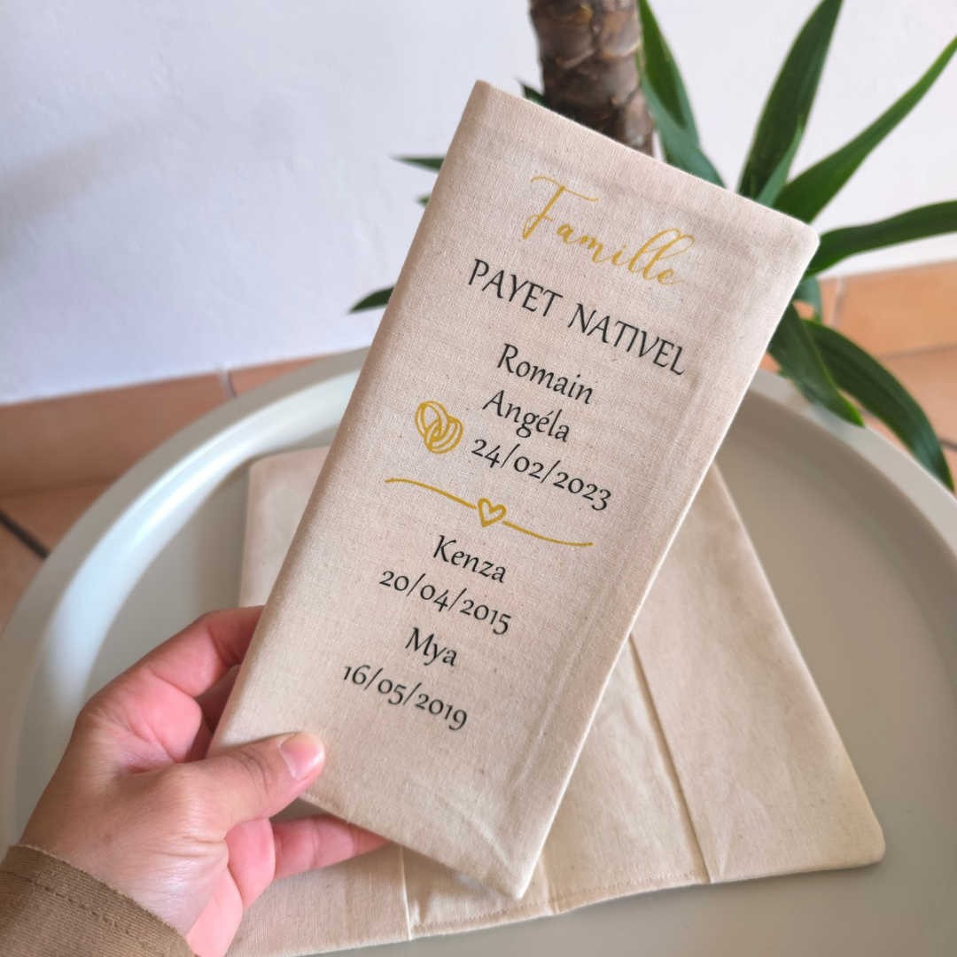 - Unicité : Chaque protège livret est confectionné sur mesure pour refléter votre histoire familiale.
