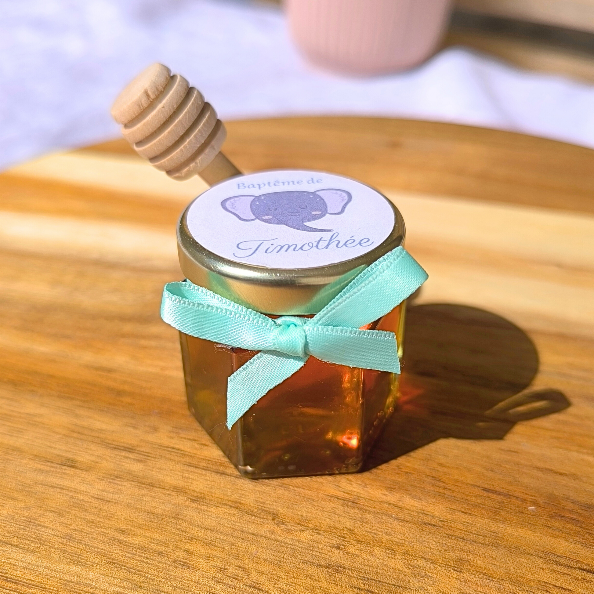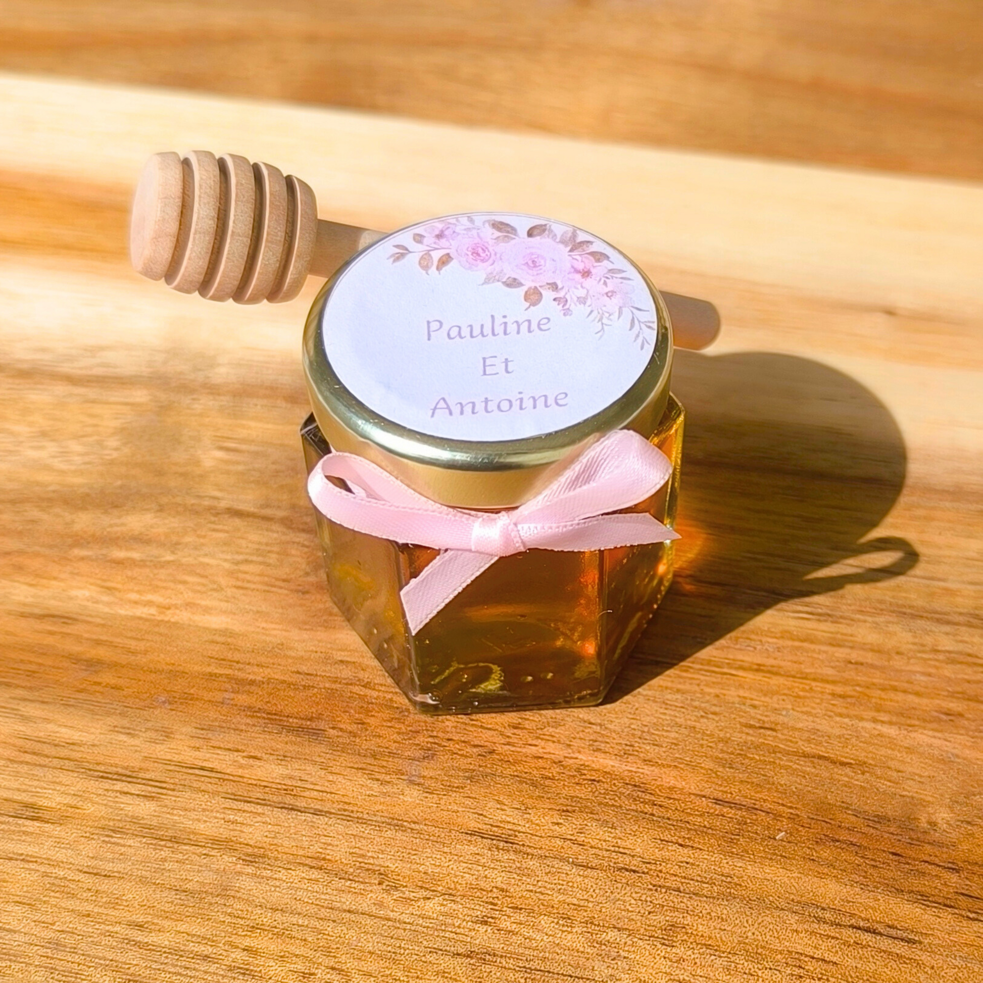 Chaque pot est accompagné d'une adorable cuillère à miel en bois, ajoutant une touche d'élégance et de praticité à votre cadeau !