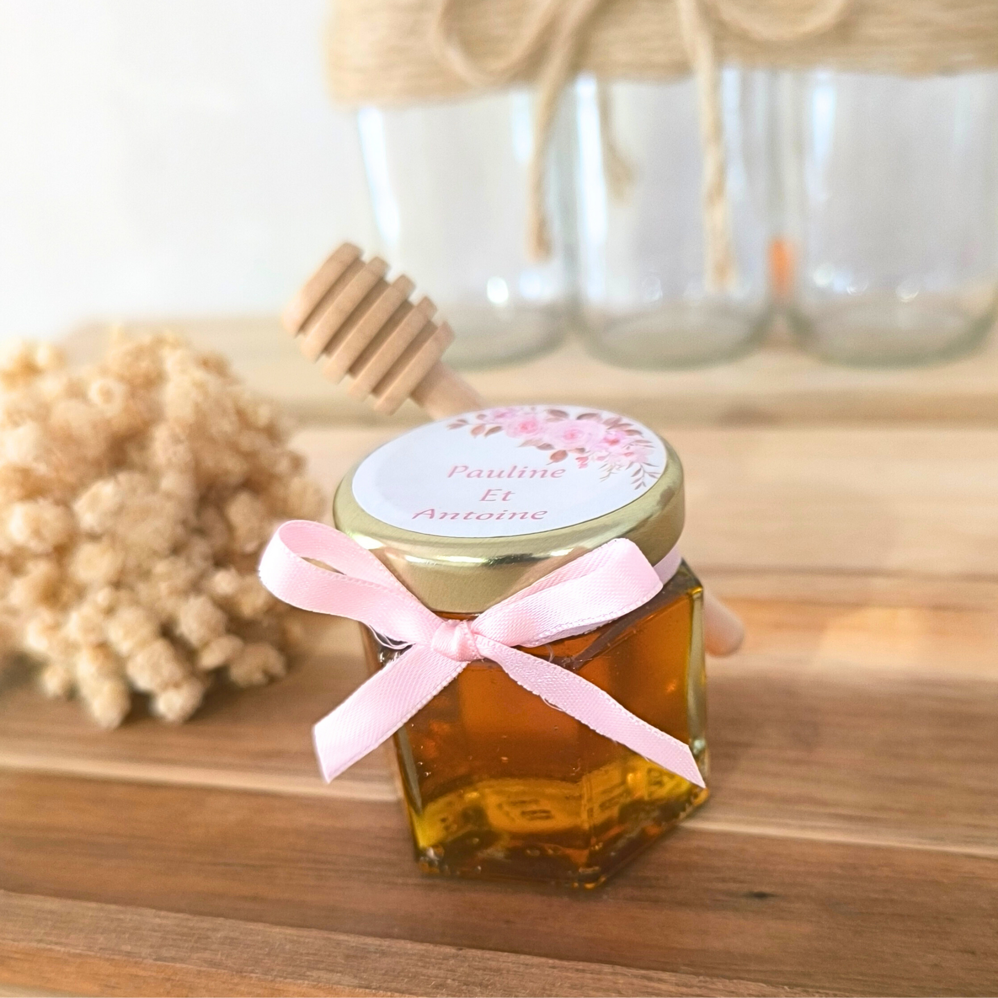 Offrez un cadeau unique et délicieux avec notre petit pot de miel hexagonal de 50 g. Parfait pour toutes les occasions festives, ce pot de miel fait un excellent cadeau d'invité pour vos mariages, anniversaires, baptêmes, ou même pour des événements d'entreprise. Chaque pot est soigneusement rempli de miel français , offrant une touche de douceur à vos célébrations.